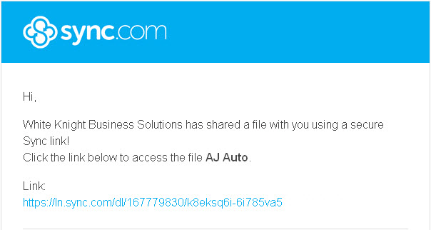 The first event is that you will receive an email notice like the one in the image below. You would click the link, and it will open up the Sync.com site in your browser.