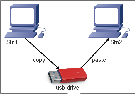 When computers are not networked, sharing data requires the use of a USB drive (or other media such as DVD etc.)